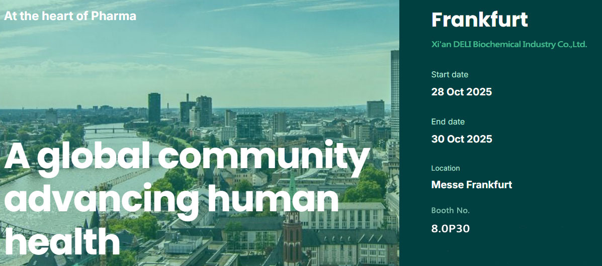 Industria bioquímica Co., Ltd. de Xian Deli participará en CPhI Europe 2025, que se celebrará del 28 al 30 de octubre de 2025 en Frankfurt, Alemania.