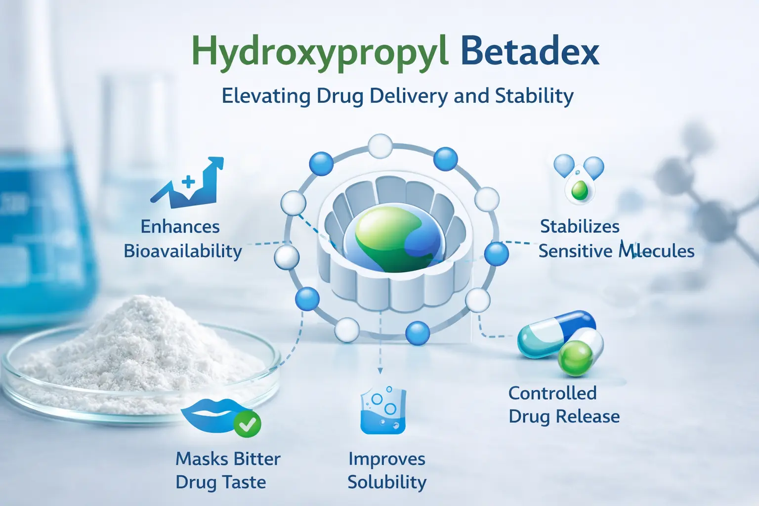 Con la liberación controlada, los formuladores pueden cambiar la forma en que se liberan los medicamentos sin tener que utilizar métodos de administración complicados. El hidroxipropil Betadex puede alterar la forma en que la molécula huésped interactúa con la molécula huésped para lograr patrones de liberación instantánea, sostenida o específica. Esta versatilidad acorta el tiempo que lleva crear nuevos medicamentos y facilita que los pacientes sigan sus planes de dosificación, lo que mejora el cumplimiento.